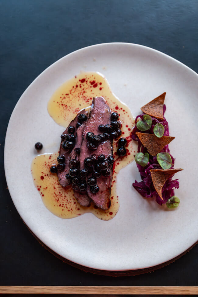 Goose breast, rye bread, crowberries | Gänsebrust, Roggenbrot, Krähenbeeren