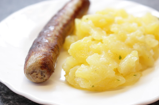 Nicht mal 50 m weiter ging es nach dem leckeren Käse zur Traditionsmetzgerei Stefan Skolik. Dort durften wir fränkische Bratwurst mir Kartoffelsalat probieren.