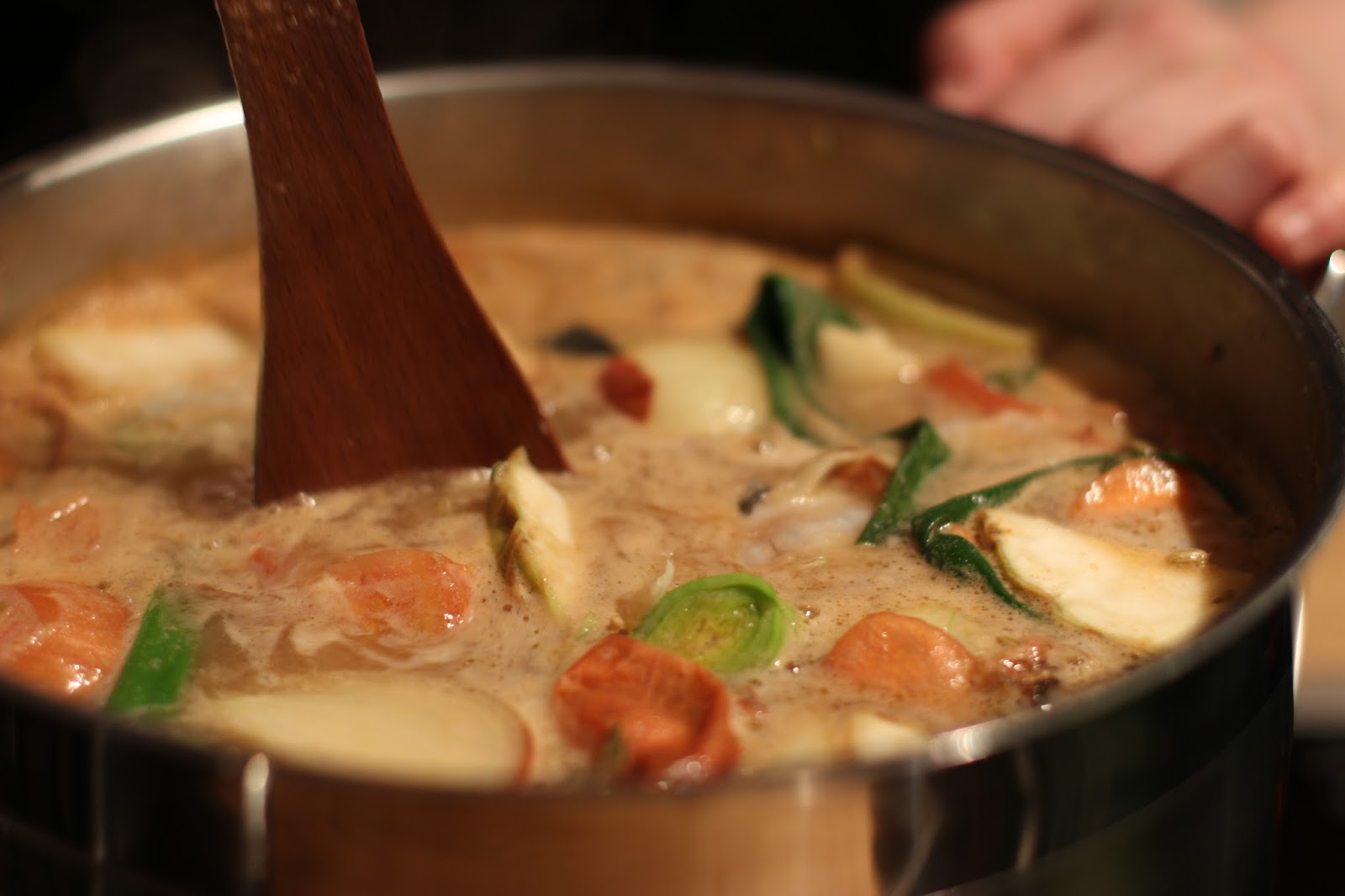 Los ging es damit einen Fischfond anzusetzten aus Karkassen (das sind die Gräten und „Knochen“ der Fische) und Fisch- und Fischhautresten und verschiedenem Gemüse. Dazu etwas Olivenöl in einen Topf geben, die Karkassen anbraten, dann mit Gemüsefond ablöschen und grob geschnittenes Gemüse und Fischreste hineingeben.