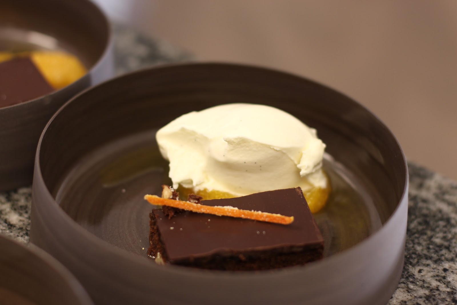 Als krönenden und süßen Abschluss gab es dann noch das Vanille-Eis mit einem Schokoladen-Brownie und Orangenfilets. Dazu wurden dann ein paar feine Schnäpschen verkostet und wir liesen den Tag und die Eindrücke ausklingen.